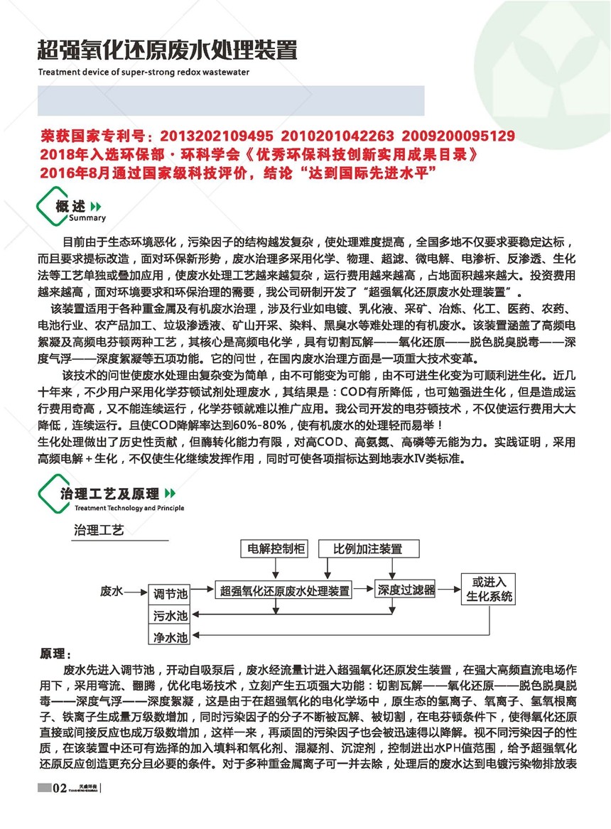 超強(qiáng)氧化還原廢水處理裝置(CYH法)處理各種有機(jī)廢水、各種重金屬?gòu)U水