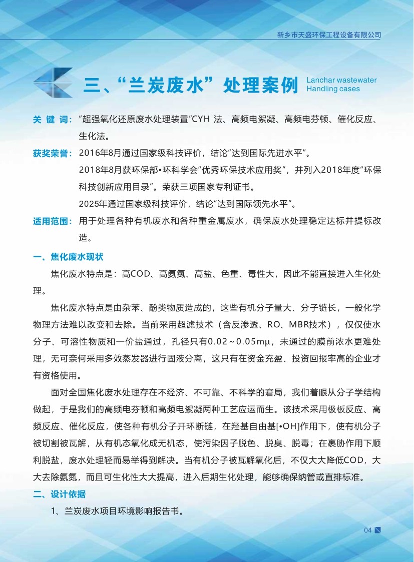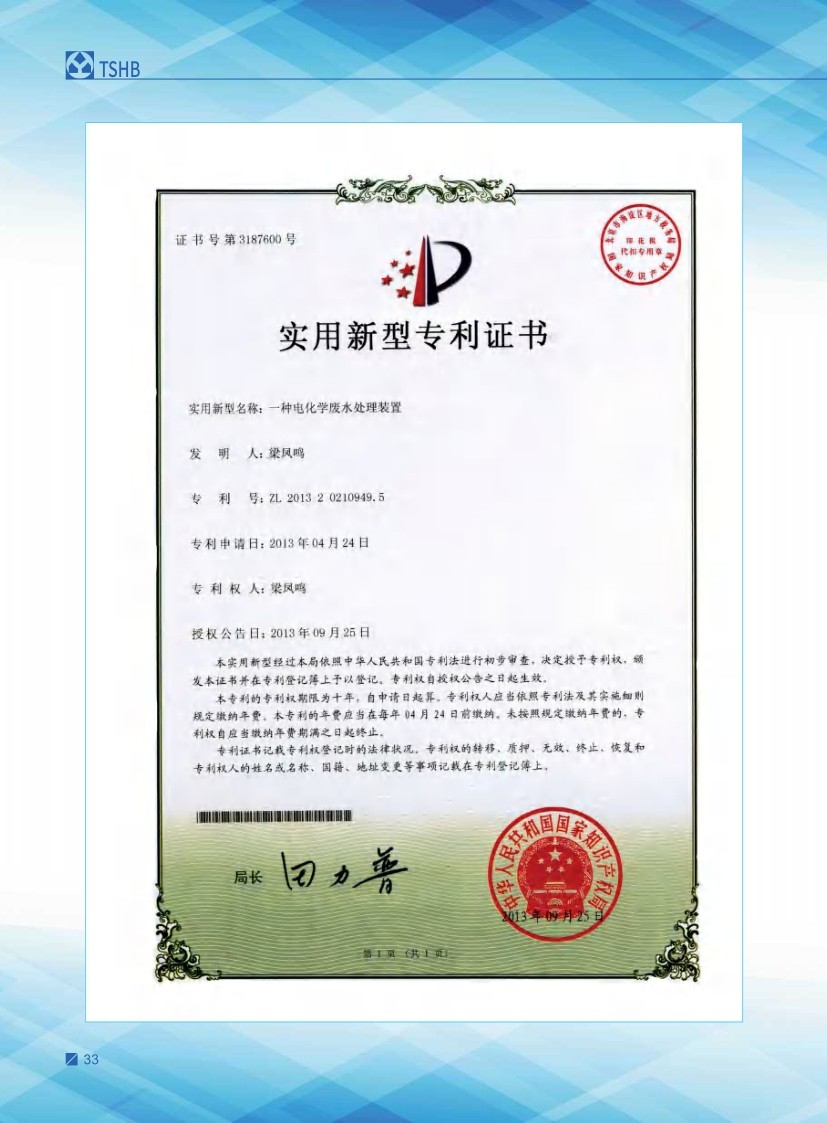 公司始建于1986年,以處理各種有機(jī)廢水、各種重金屬?gòu)U水為主,獨(dú)立研制開發(fā)多種節(jié)能環(huán)保產(chǎn)品,已獲多項(xiàng)國(guó)家發(fā)明及新型專利一種電化學(xué)廢水處理裝置 ZL 2013 2 0210949.5。公司堅(jiān)持“以質(zhì)量求生存、以信譽(yù)求發(fā)展、以市場(chǎng)為導(dǎo)向、以技術(shù)為依托”的宗旨。
