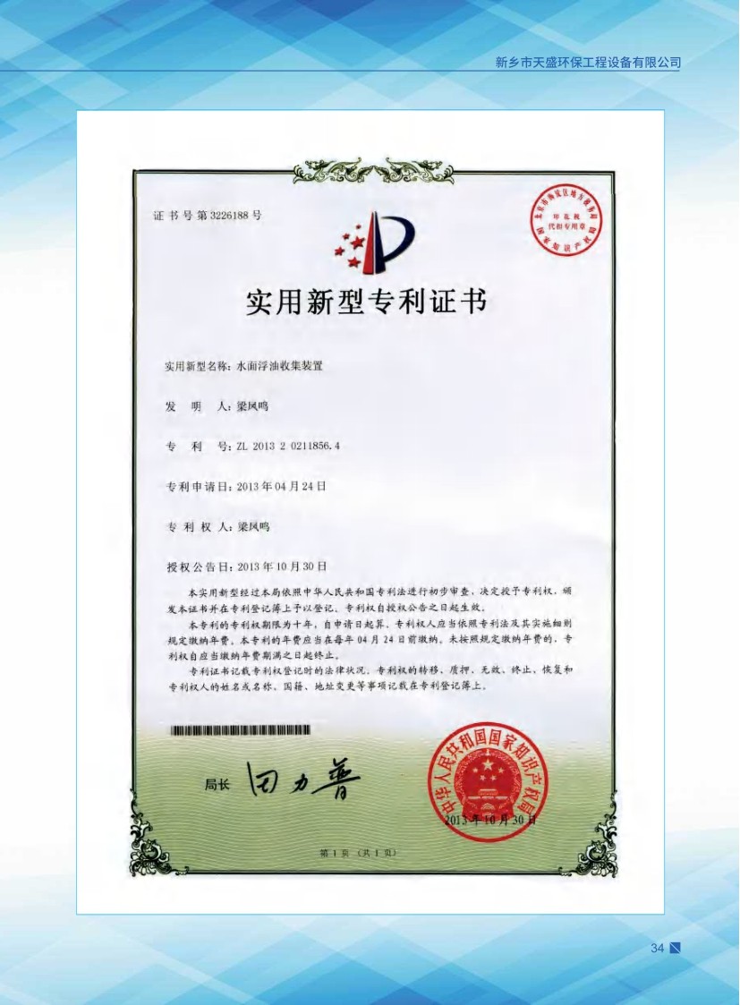 以治理廢水為主,獨(dú)立研制開發(fā)多種節(jié)能環(huán)保產(chǎn)品,已獲多項(xiàng)國(guó)家發(fā)明及新型專利水面浮油收集裝置 ZL 2013 2 0211856.4。公司堅(jiān)持“以質(zhì)量求生存、以信譽(yù)求發(fā)展、以市場(chǎng)為導(dǎo)向、以技術(shù)為依托”的宗旨,產(chǎn)品在國(guó)內(nèi)以“技術(shù)新、性能好、價(jià)格廉”著稱。